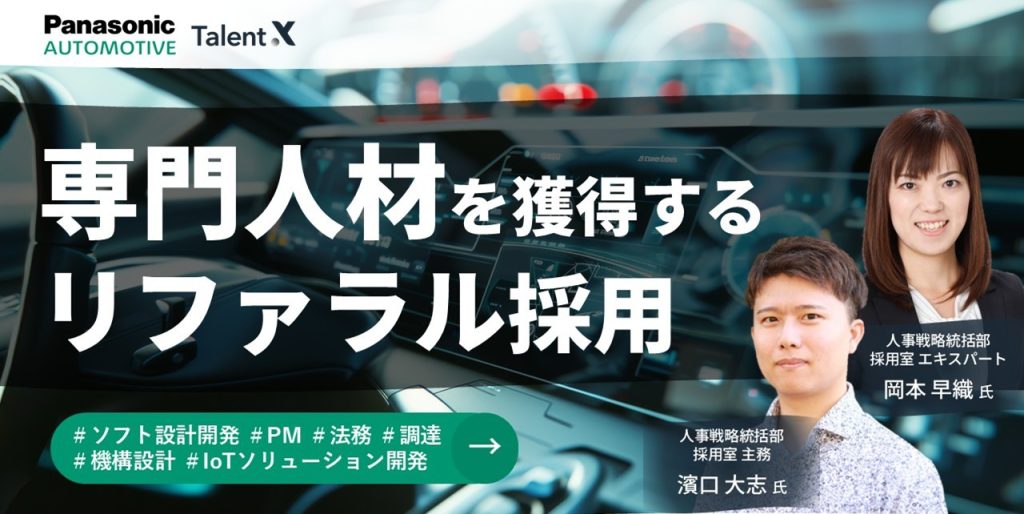 ➤専門人材の獲得に効果的なリファラル採用の取り組みについて語る、パナソニック オートモーティブシステムズ様のセミナーレポートはこちらから