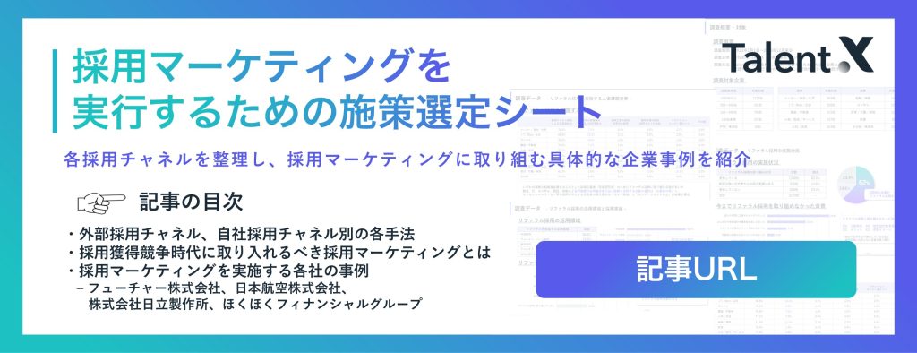 ▼採用マーケティングとは何か、具体的な施策内容について詳しく知りたい方は、こちらの記事もご覧ください
