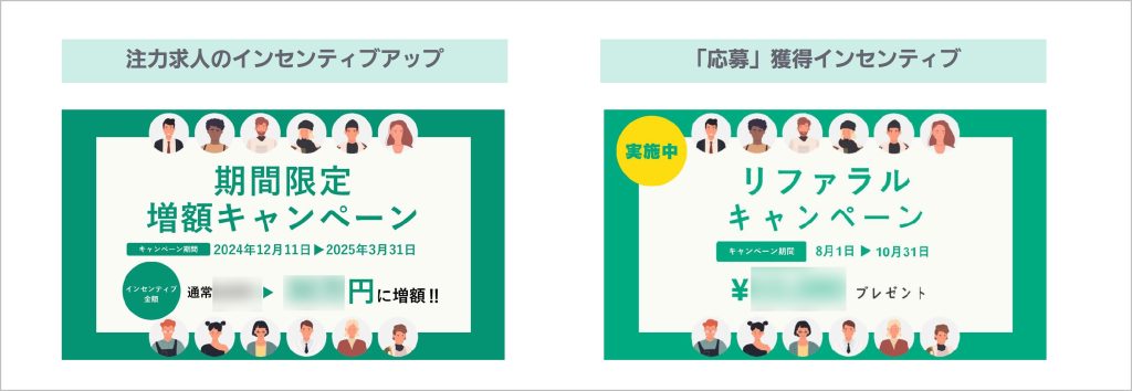 より多くの社員がリファラル採用に取り組むきっかけを作るべく、期間限定で注力求人の入社決定時のインセンティブアップを行ったり、入社決定時のインセンティブだけでなく応募獲得時のインセンティブを支給するといったキャンペーンも実施いたしました。
