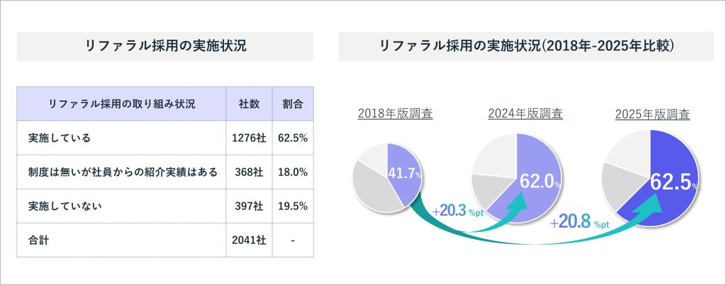 出典:TalentX|2025年1月 「リファラル採用の実施状況に関する企業規模・業界別 統計レポート」