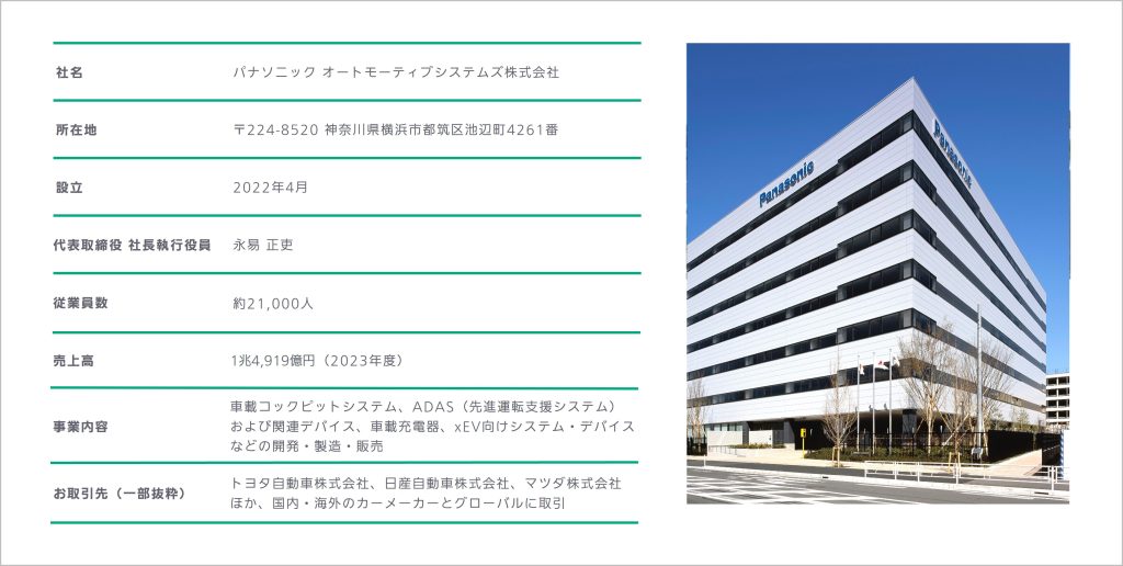 ではここからはパナソニック オートモーティブシステムズ様の岡本様、濱口様にお話しいただきたいと思います。それではまず本題に入る前に、ぜひ会社のご紹介をお願いしてもよろしいでしょうか。