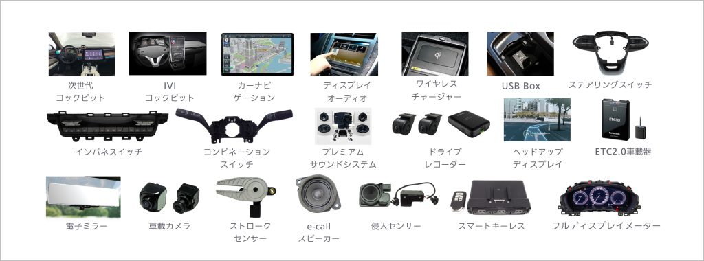当社で取り扱っている製品の一部をご紹介いたします。私たちは一人ひとりのより良いくらしと持続可能なモビリティ社会の実現に向けて、このような車載システムやデバイス、ソフトウェアの開発・製造・販売を通じてカーメーカー様のクルマづくりと人々の移動体験に新たな価値を創出すべく、事業展開を続けてまいります。