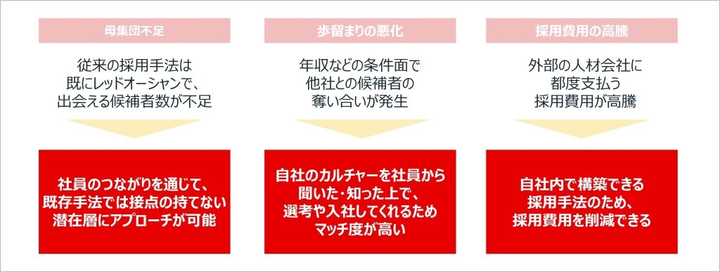ありがとうございます。そんな課題を解消すべくリファラル採用を開始されたかと思いますが、様々ある採用手法の中でもリファラル採用に着目された理由についても教えていただけますか?