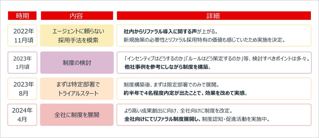 リファラル採用の制度を展開するまでの期間について