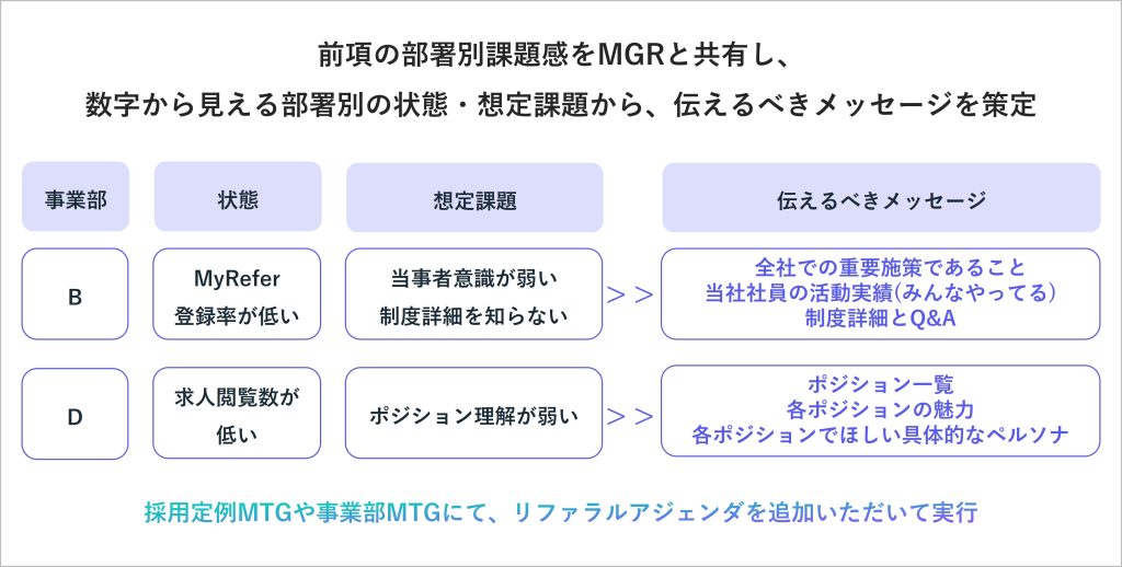 部署別施策① 各部署MTGでの広報|部署の状態別にメッセージング