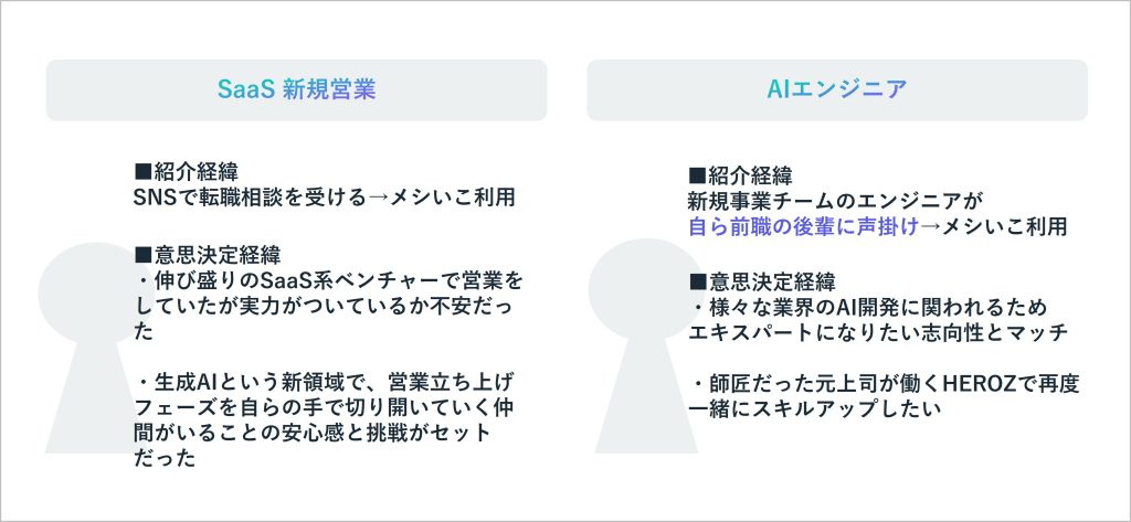 特に、AIエンジニアやAI商材を扱う営業経験者などは、一般的な転職サイトやエージェントでは出会えないため、別の方法で接点を持つ必要がありました。