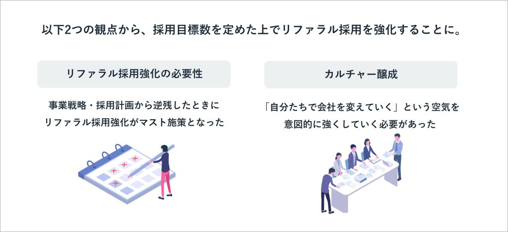 1点目は、先ほどご紹介したリファラル採用に注目した背景から、事業戦略・採用計画上リファラル採用の強化が必要だったためです。