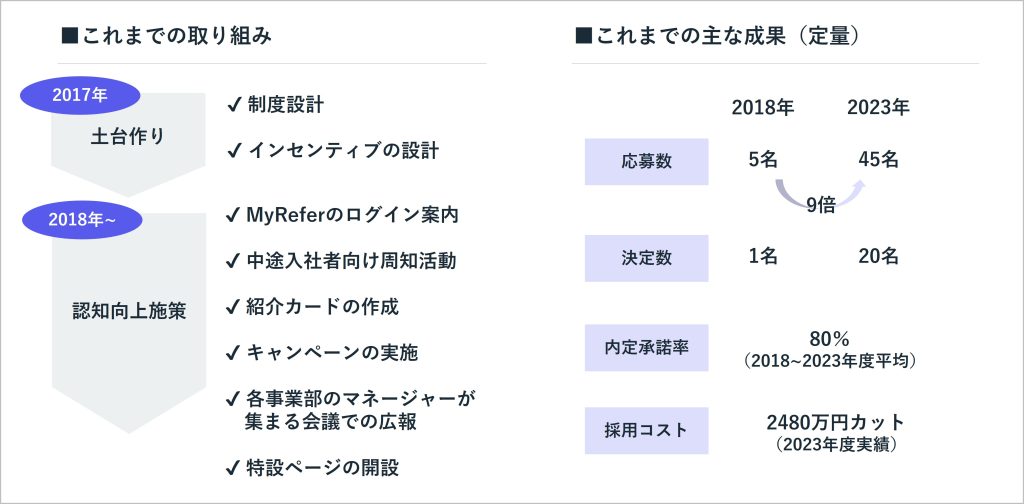 2018年からリファラル採用に取り組んでいらっしゃる中で、経年で成果創出するために意識されていらっしゃることをぜひご紹介いただけますでしょうか。