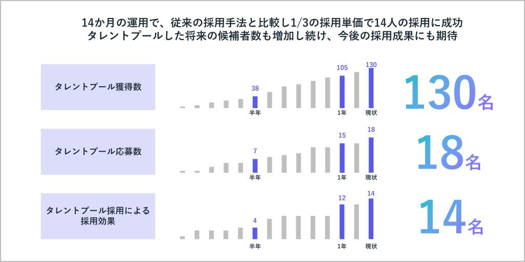 今後もプールされた将来の候補者数は増加が見込まれており、プール数が増えれば応募や決定も増えていきます。減ることは基本的にないので今後も継続的に成果につながるものと期待しています。