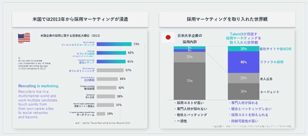 『Recruiting is Marketing(採用マーケティング)』という考え方は、米国で2013年頃から広く語られるようになり、その後欧州諸国にも広がっていきました。