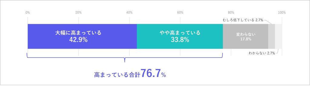 1年前と比べて採用活動における経営陣の危機感は高まっていると感じますか