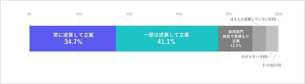 「常に事業計画から逆算した採用計画」を立案している企業は34.7%。経営・事業計画と連動した採用活動推進は道半ばであることがわかりました。