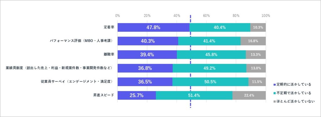入社後の定着率や評価を活用し採用要件の定期改善に活かす企業は半数以下。どんな人材が価値を生むかの検証サイクルが不十分であることがわかりました。