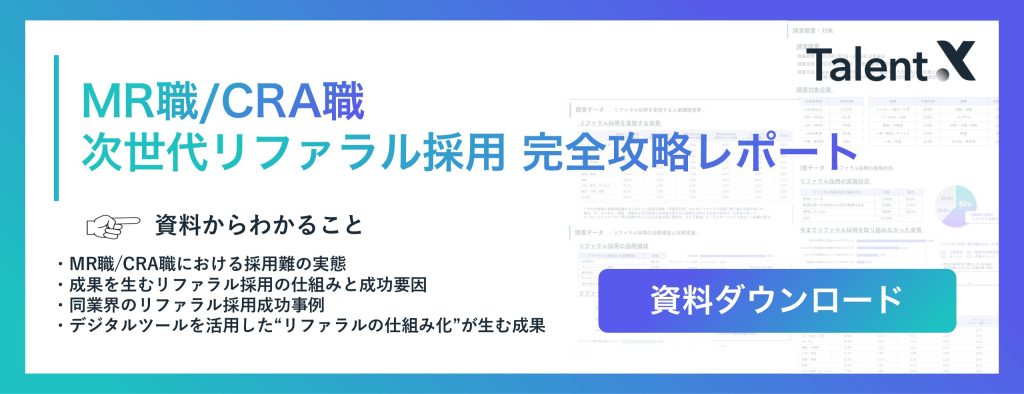 ▼「MR職/CRA職の次世代リファラル採用 完全攻略レポート」資料ダウンロード