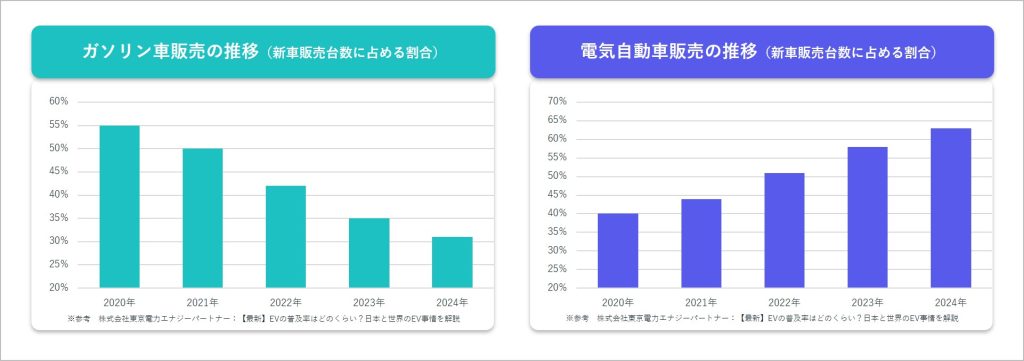 自動車・自動車部品業界は現在、「100年に一度」とも言われる大きな転換期を迎えています。世界的な環境規制の強化や電動化の進展を背景に、従来のエンジン・機構中心のものづくりから、電動化・制御・ソフトウェア機能を前提とした車づくりへと大きくシフトしています。国内市場においても、ガソリン車の比率は低下し、HEVやEVをはじめとした電気自動車の販売比率が着実に高まっています。
