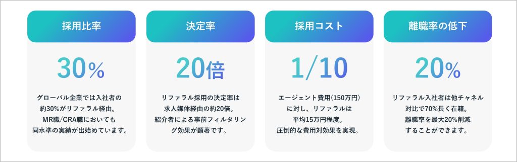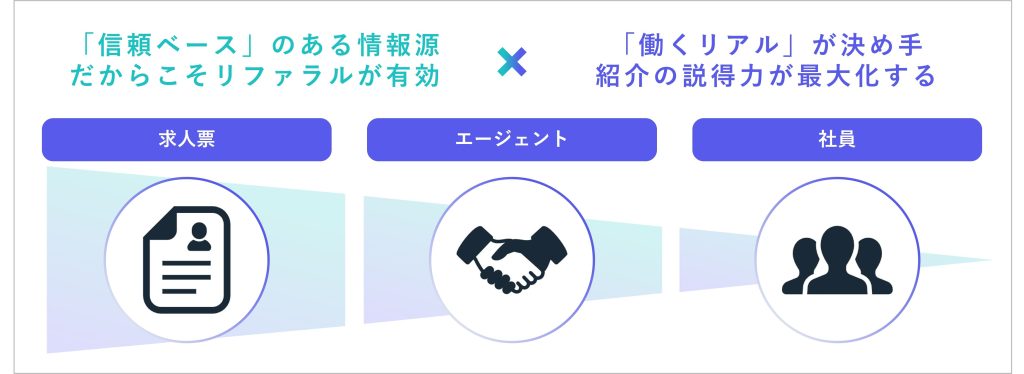 こうした採用環境と人材側の行動変化を踏まえると、広告×デジタル人材の採用においては、従来とは異なるアプローチが求められていることが分かります。その中で注目されているのが、社員のつながりを活用するリファラル採用です。
