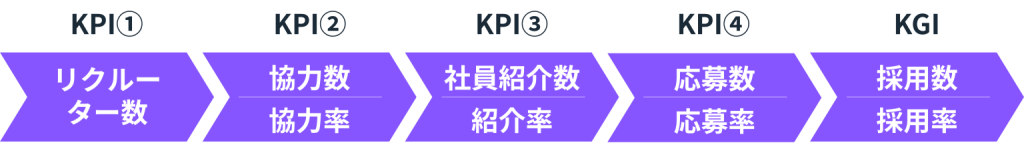 制度や運用フローを設計することでリファラル採用をスタートさせることは可能ですが、採用部門はより継続的なPDCAを回すためにも事前にKGI・KPIを設計しておくことが重要です。