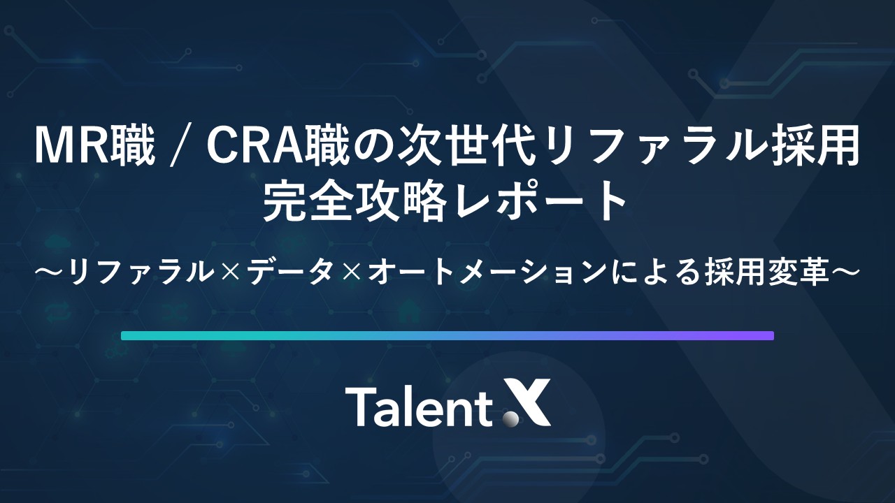 - 本レポートでは、社員一人ひとりが持つ“つながり”を活かす「リファラル採用」に焦点を当て、MR職/CRA職の採用において成果を最大化するためのポイントを、業界特有の課題とあわせて解説していきます。