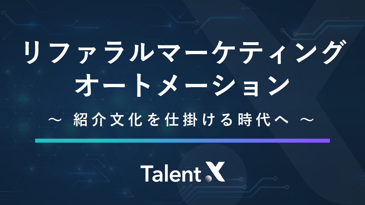 - 本ガイドはリファラル採用比率10%を達成した企業様が、次のステージ進むために必要な「仕組み化」と「自動化」について詳しく解説しています。 単なる「制度構築」から、積極的に「仕掛ける」フェーズへの転換点に立つ企業の皆様に向けて、リファラルマーケティングオートメーションの全体像や導入効果、実践的なロードマップまでをご紹介します。