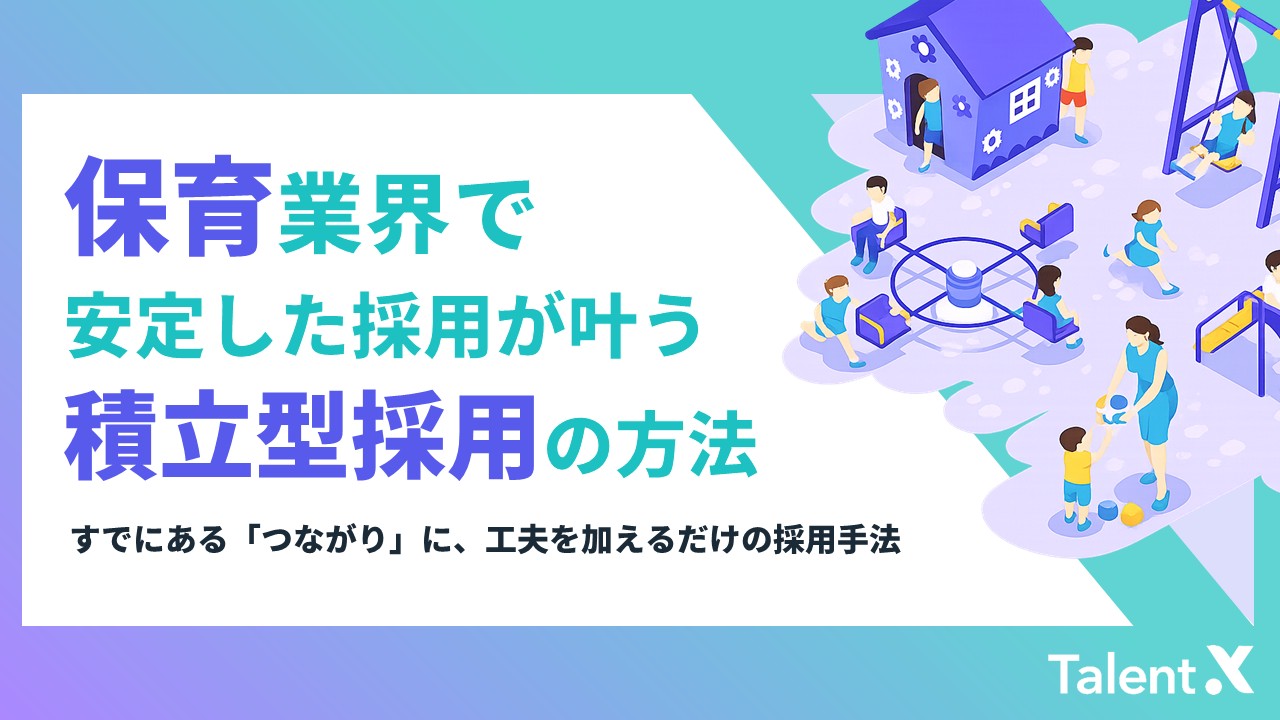 - 本資料では、慢性的な人手不足が続く保育業界において、求人媒体や人材紹介に依存した従来型の採用手法から脱却し、安定的に保育士を採用するための新たなアプローチをご紹介します。 多くの保育士はすぐに応募を決断するのではなく、情報収集や比較検討を重ねながら、自身に合ったタイミングを見極めているのが実情です。にもかかわらず、園の情報を閲覧した方や見学を検討した方、過去に接点を持った方といった“将来の候補者”との関係性を継続的に活かせていないケースは少なくありません。 そこで本資料では、採用を「欠員が出てから探すもの」ではなく、保育士と中長期的に関係を築きながら成果を積み上げていく「積立型採用」へ転換するための具体的な方法について解説します。