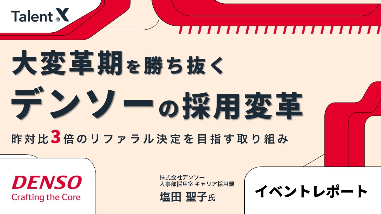 - 【イベントレポート】大変革期を勝ち抜くデンソーの採用変革~昨対比3倍のリファラル決定を目指す取り組みとは~