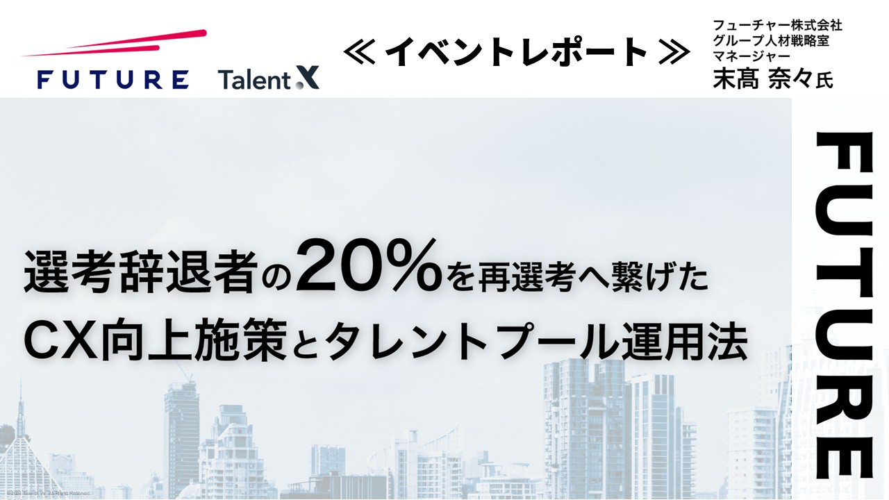 - 【イベントレポート】フューチャーの即戦力採用~選考辞退者の20%を再選考へ繋げたCX向上施策とタレントプール運用事例~
