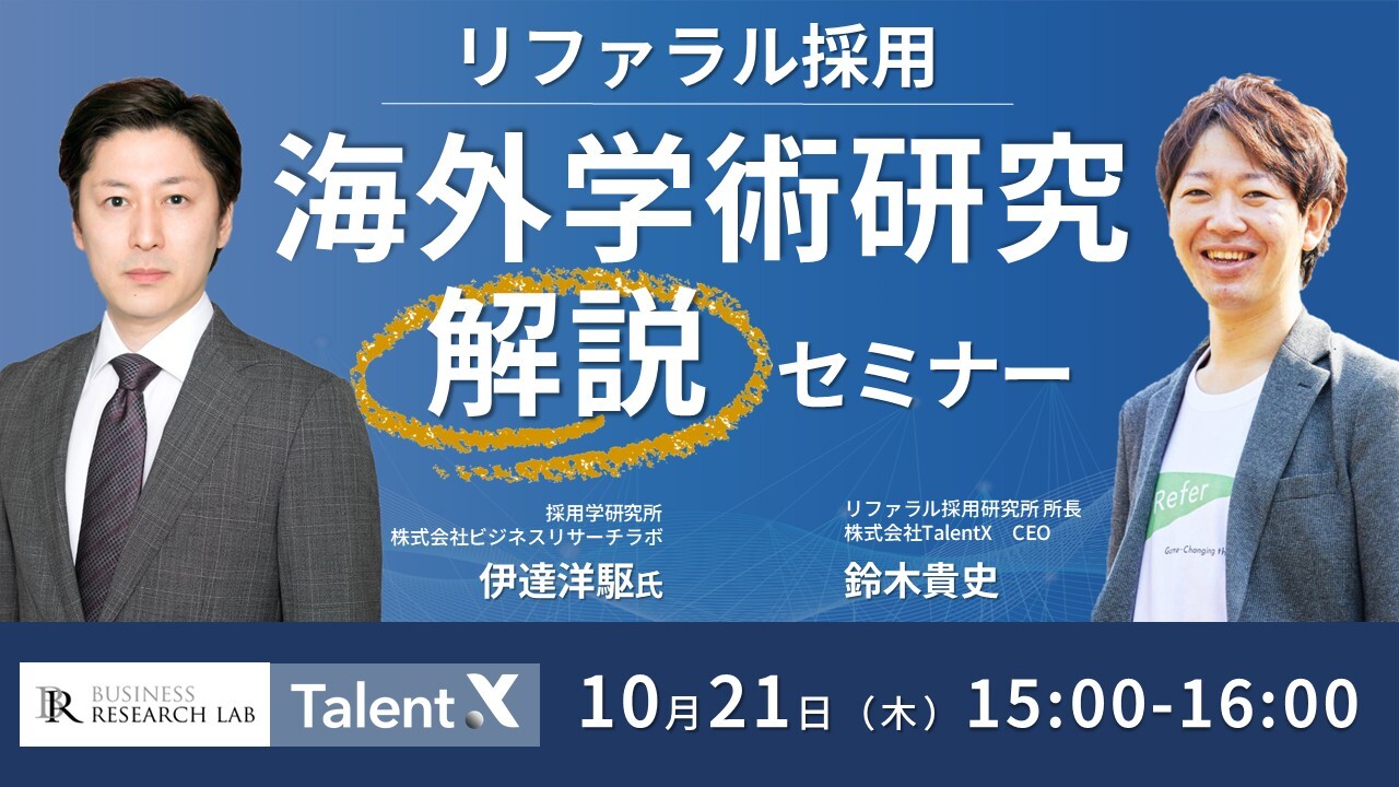 リファラル採用の海外学術研究 解説セミナー ~どのように従業員が紹介行動をして、組織にどんな効果があるのか~